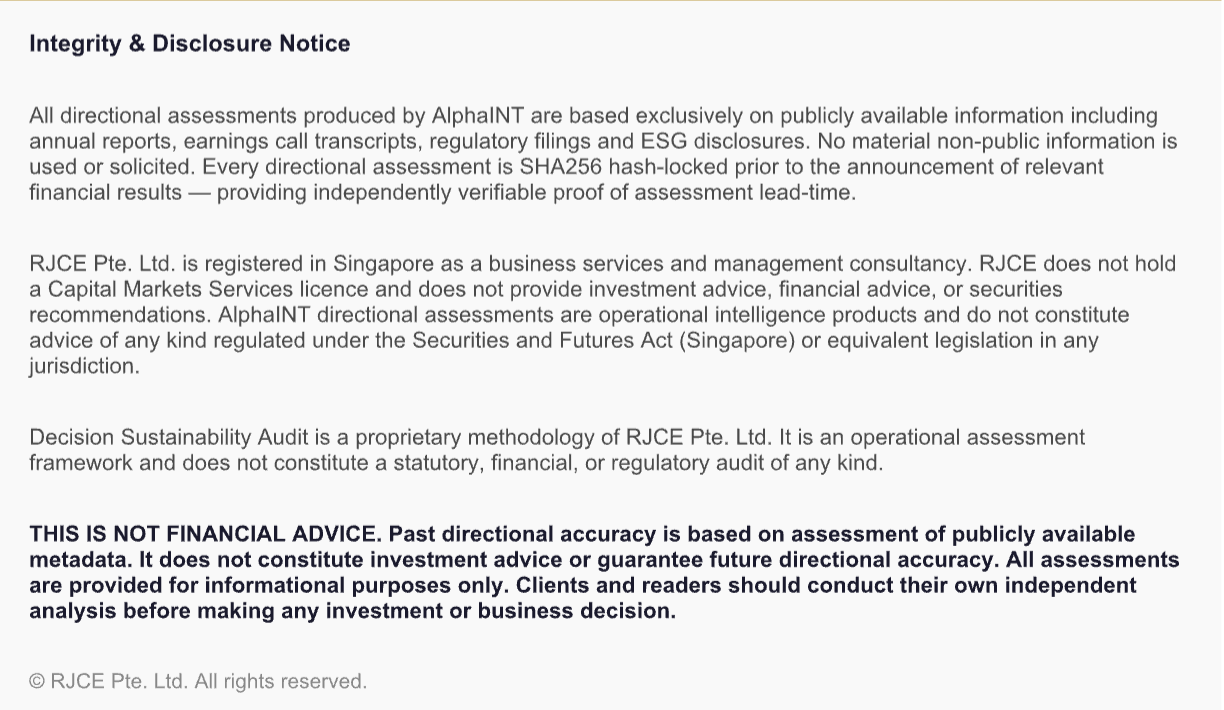 Decision Sustainability Audits — for institutions, corporates and investors who need to see ahead.